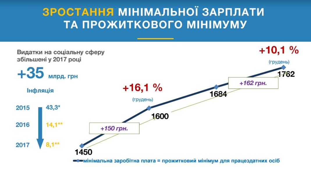 Минимальная зарплата и прожиточный минимум с 1 декабря 2017 года – 1762 гривны;