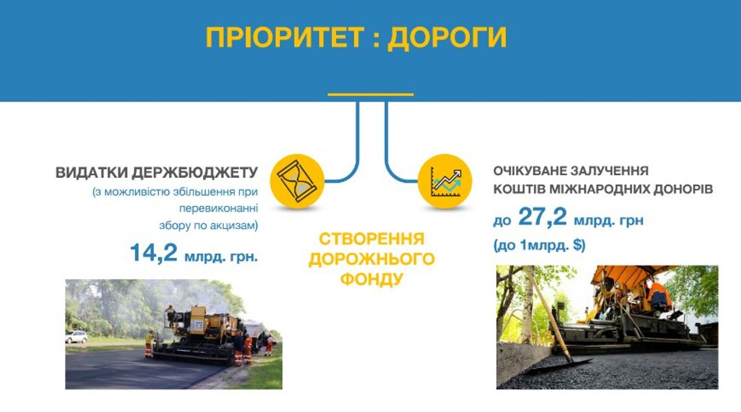Расходы на дороги – 14,2 млрд грн + ожидаются 27,2 млрд грн от международных доноров;