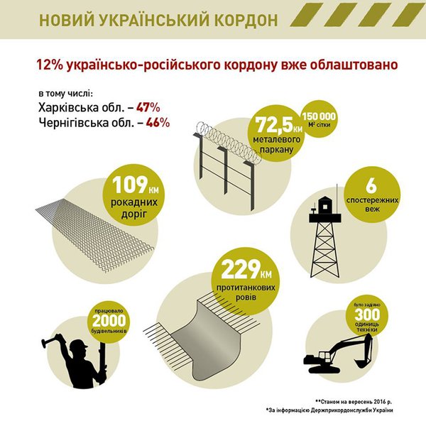 По состоянию на сентябрь 2016 года в Харьковской области обустроено 47% украино-российского участка границы, в Черниговской – 46%