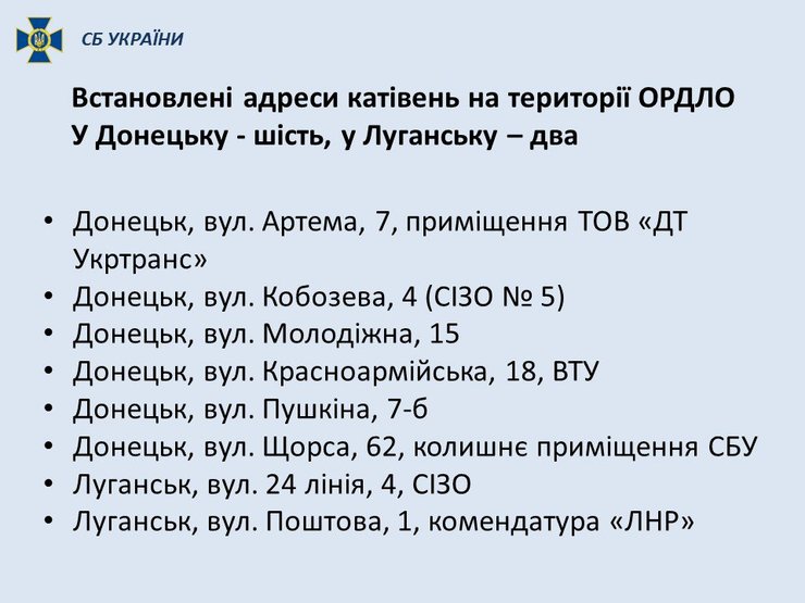 СБУ установила адреса пыточных на территории оккупированного Донбасса