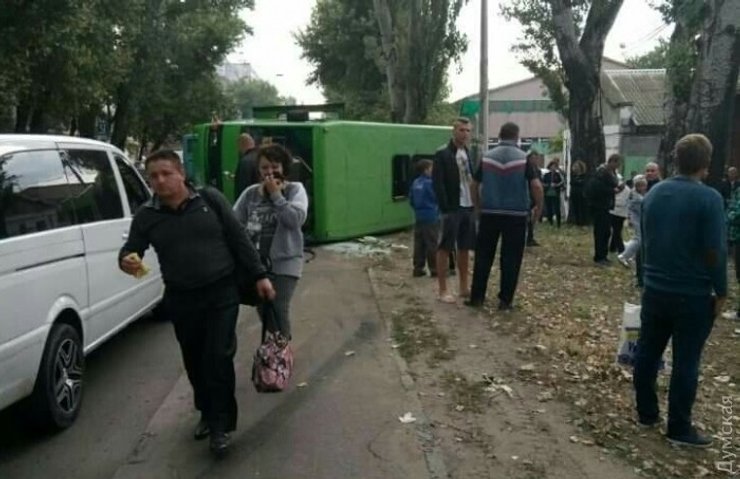 В Одессе в воскресенье днем во время движения перевернулся маршрутный автобус с пассажирами, семь человек травмированы.