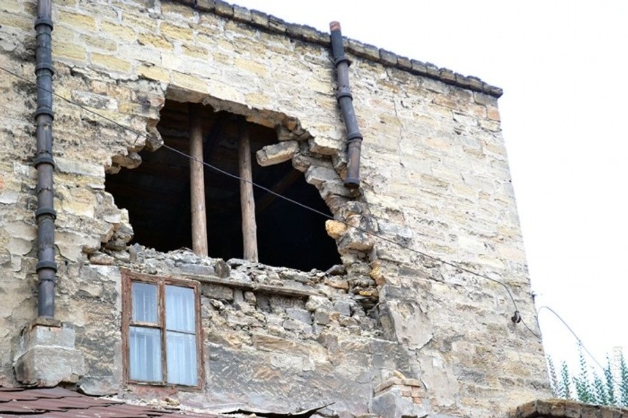 В результате обрушения в стене дома образовалась дыра примерно два метра в диаметре. Обломки упали на крышу расположенного вплотную жилого дома, пробили потолок квартиры. Пострадавших нет.