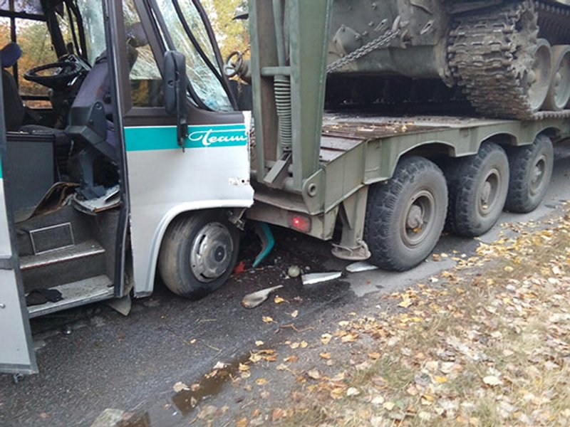8 октября возле села Митков Гайсинского района Винницкой области произошло дорожно-транспортное происшествие с участием пассажирского автобуса и военного тягача.