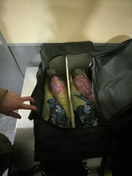 Восемь соколов злоумышленники упаковали в две сумки / Фото: ГПСУ