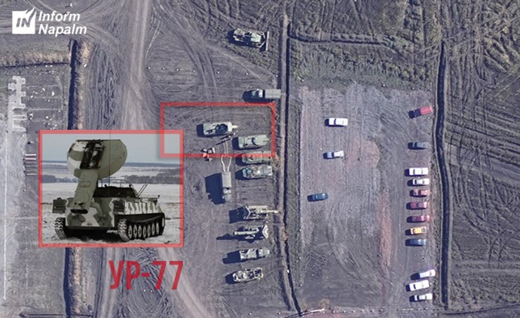 "И самый главный сюрприз — это наличие на снимке двух установок разминирования "Метеорит", которые стоят на вооружении исключительно Российской Федерации. Кроме своего основного назначения – разминирования объектов, УР-77 используют и для уничтожения живой силы в укрепленных руинах зданий.