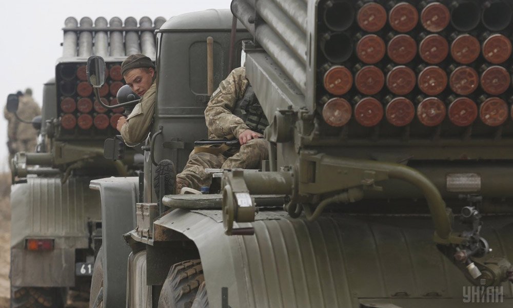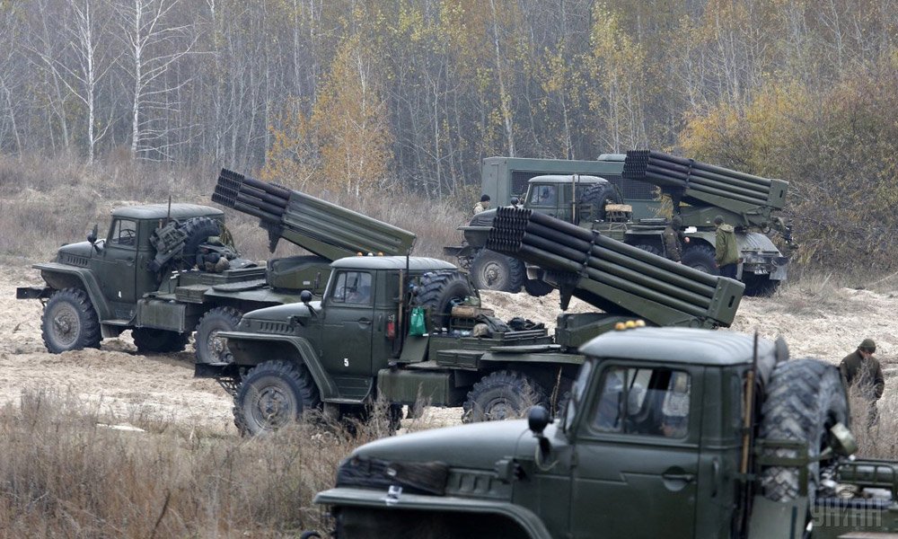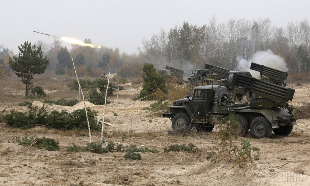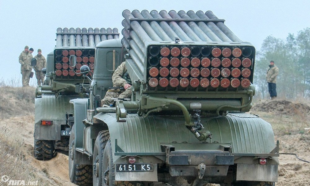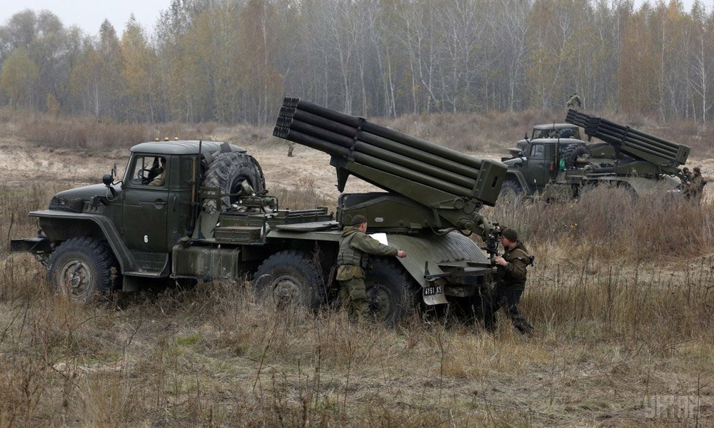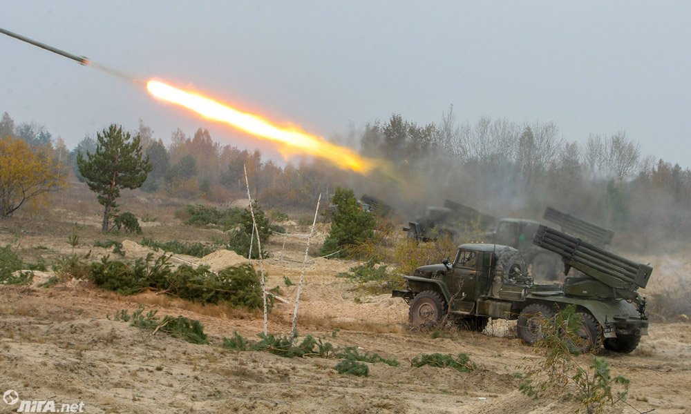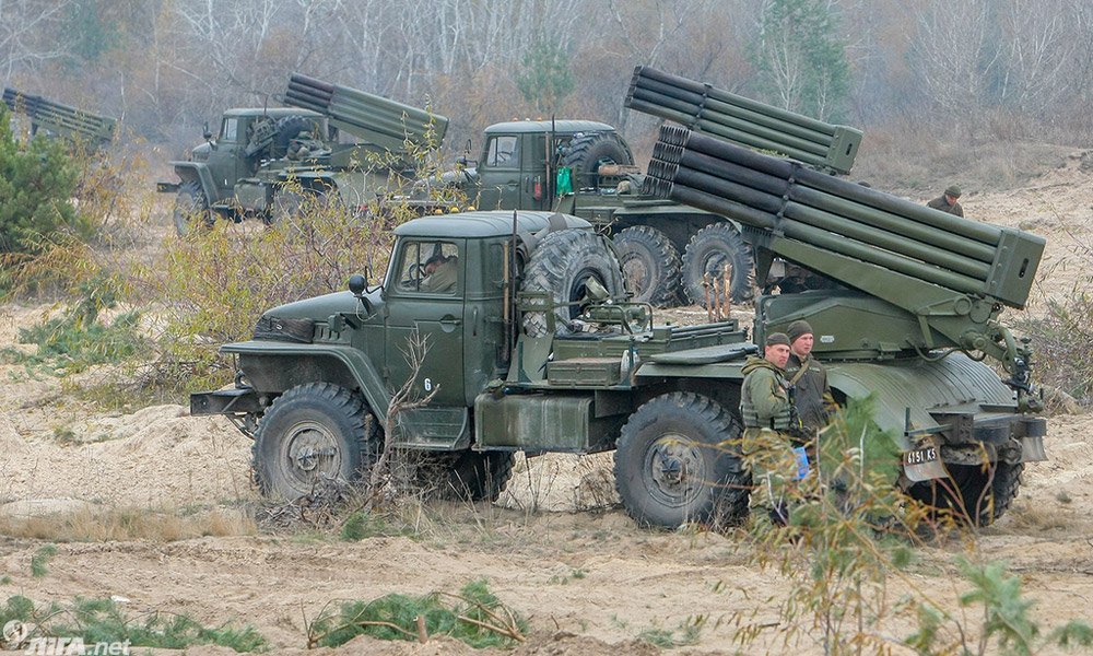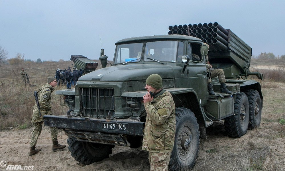 Cолдаты ВСУ провели практические стрельбы с помощью реактивной артиллерии. В маневрах были задействованы реактивные системы залпового огня "Град".
