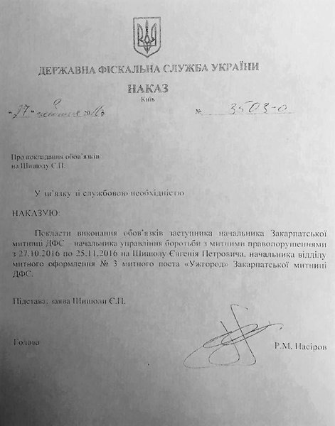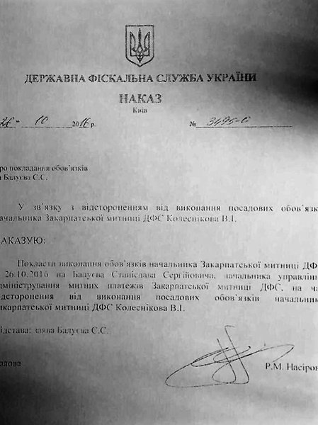 Напомним, 26 октября глава ГФС Роман Насиров отстранил от выполнения служебных обязанностей начальника Закарпатской таможни Владимира Колесникова и начальника таможенного поста "Ужгород" Евгения Потоцкого.