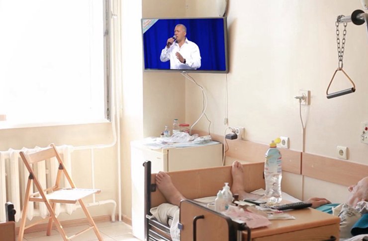 Виталий, пациент клиники: "Вы сами понимаете, что лечение здесь сложное, люди здесь находятся в дооперационном периоде и после процедурном периоде в тяжелом состоянии, поэтому это мероприятие с установкой телевизоров для больных, лично для себя я считаю, большая поддержка. Даже при какой-то симптоматике и дискомфорте, которые существуют в послеоперационный период, наличие телевизора, наличие возможности просмотра программ отвлекают человека от его физических болей, от психологических и моральных неудобств, настраивают на позитив".