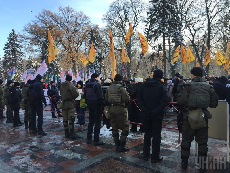 Сейчас в центральной части столицы проходят два митинга. Около 400 человек находятся на площади Конституции возле здания Верховной Рады, еще 1,5 тыс. человек - напротив здания Национального банка Украины. Митингующие держат флаги с надписями ликвидированных банков, большинство демонстрантов называют себя "обманутыми вкладчиками отечественных банковских учреждений".