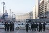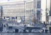 В Правительственном квартале размещено несколько десятков микроавтобусов с затонированными окнами, несколько карет скорой помощи и пожарных машин.