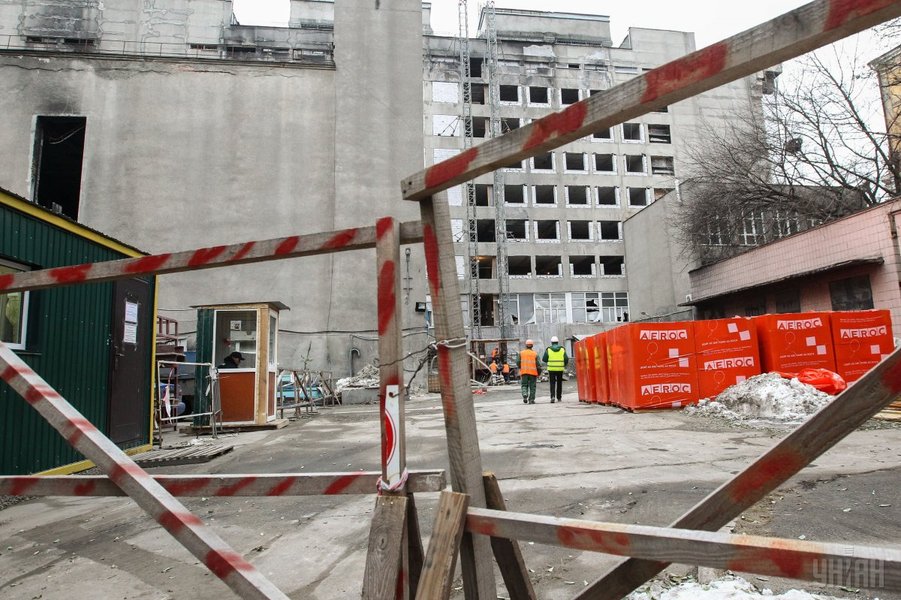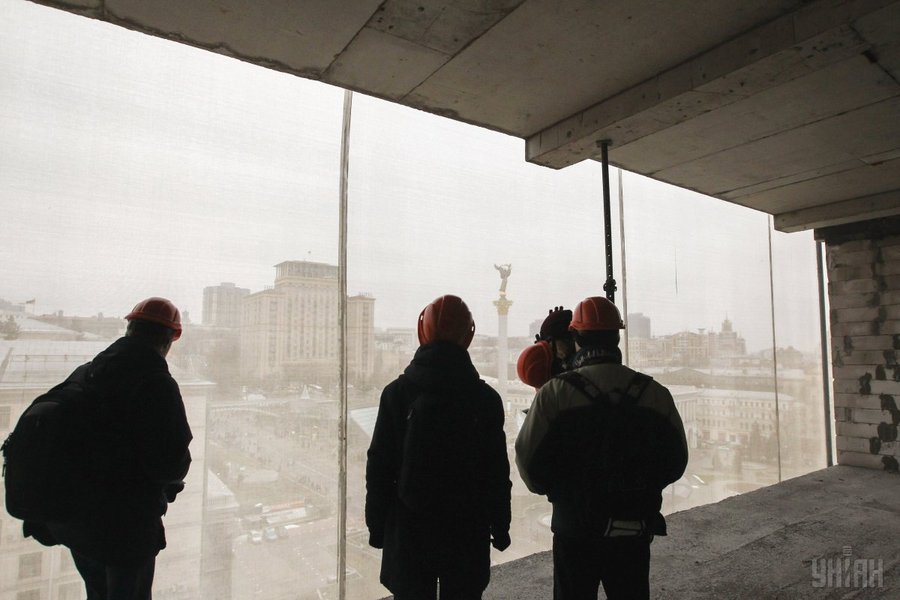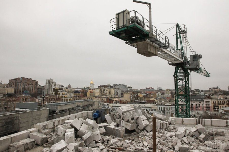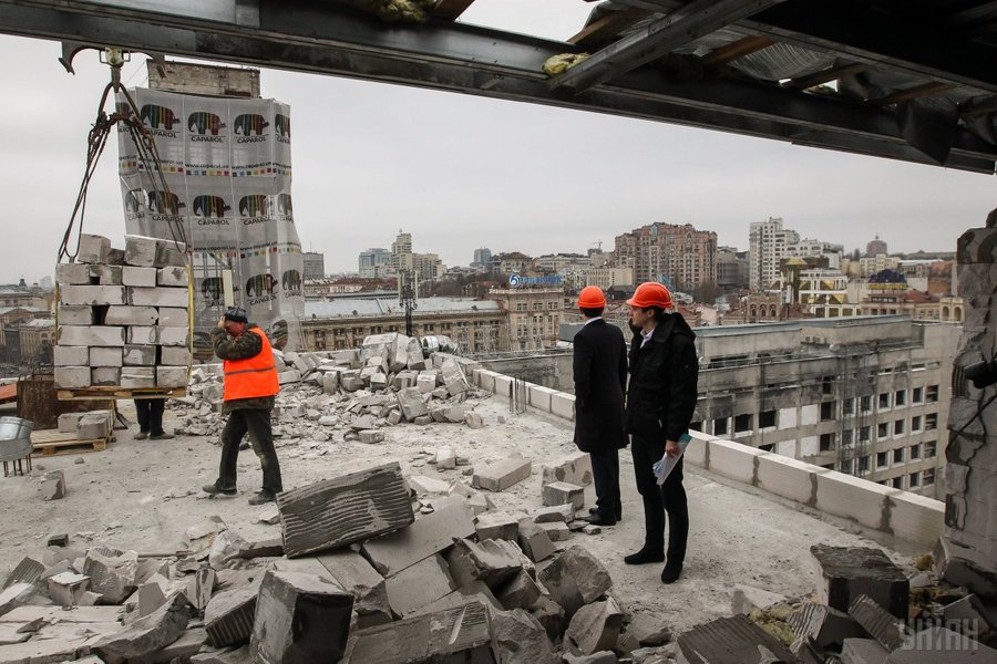 В Киеве на майдане Незалежности начали демонтировать надстройку на Доме профсоюзов