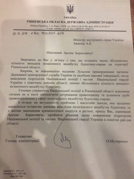 Председатель ОГА добавил, что обращению к министру внутренних дел предшествовало совещание с силовиками и руководителями районов, где сосредоточены янтарные залежи. На совещании был разработан план мероприятий по борьбе с нелегальной добычей янтаря.