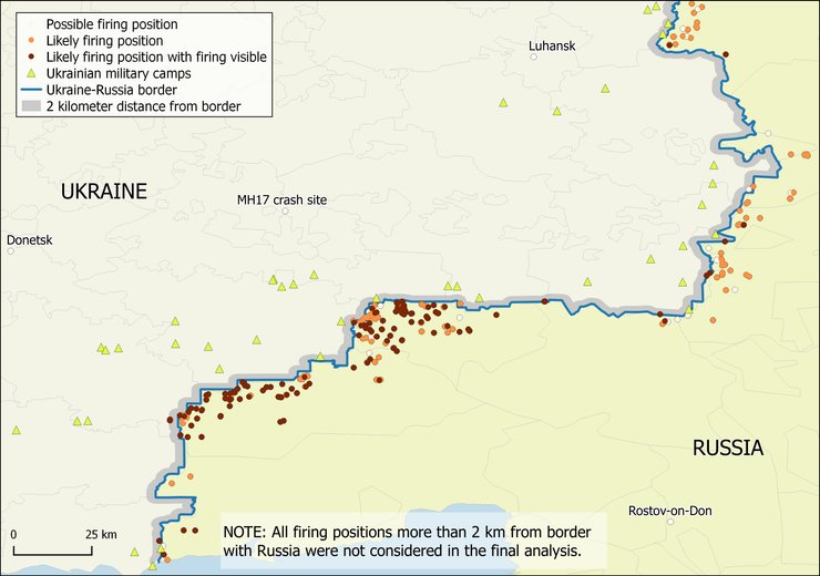 Также указано, что российская артиллерия осуществила как минимум 149 отдельных атак против Украины летом 2014 года, еще против 130 позиций с большой вероятностью была использована артиллерия армии РФ.