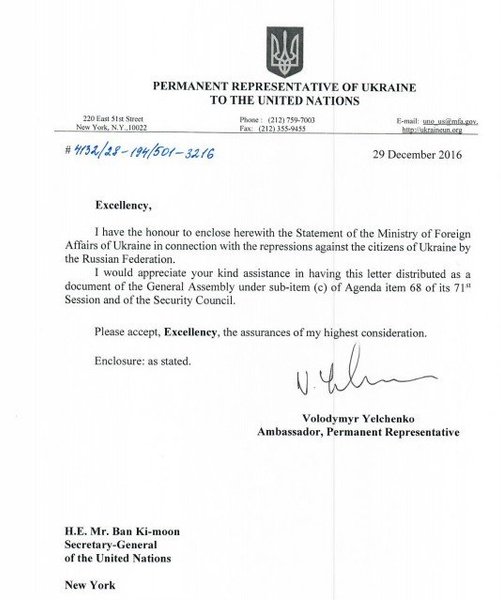 "Репрессии России против граждан Украины являются беспрецедентными. Призываем государства членов организации ООН усилить давление на агрессора", - говорится в письме.