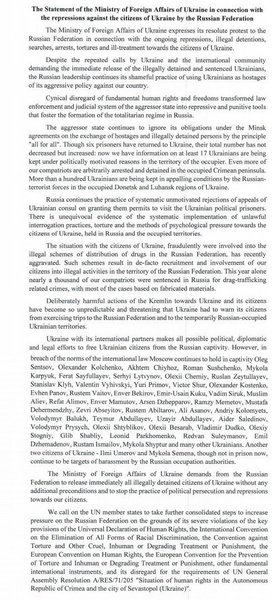 Напомним, по данным МИД Украины, на территории РФ и оккупированного Россией Крыма находятся не менее 44 украинских политзаключенных. Среди них: замглавы Меджлиса Ильми Умеров, журналист Станислав Клых, лидер Украинской национальной ассамблеи Николай Карпюк, корреспондент агентства Укринформ Роман Сущенко.