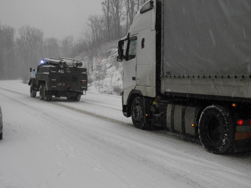 Из-за сильного снега и заносов на автодорогах государственного значения Закарпатской области временно ограничено движение тяжеловесного транспорта.