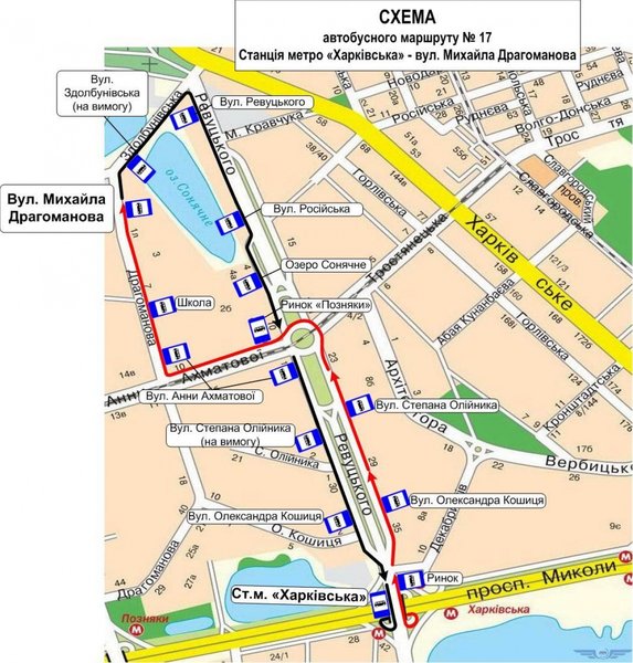 С 6 января 2017 года в Киеве организуется движение нового автобусного маршрута № 17 "ст.м. "Харьковская" – ул. Михаила Драгоманова". Об этом сообщает КП "Киевпастранс".