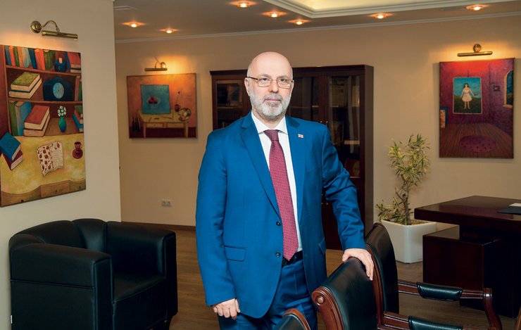 В кабинете у Григола Катамадзе сдержанный интерьер: темно-коричневая дубовая мебель, светлые обои и приглушенный свет. Нарушают строгий порядок картины с ярко-красными гранатами авторства грузинского художника Давида Шарашидзе. На одном из столиков лежит книга творца сингапурского экономического чуда Ли Куан Ю. Рядом с ней — проект нового налогового кодекса от Ассоциации налогоплательщиков, которую бывший посол Грузии в Украине возглавляет с 2015 года. Сам он хвастается, что даже создание обложки этого кодекса проходило под его чутким руководством.