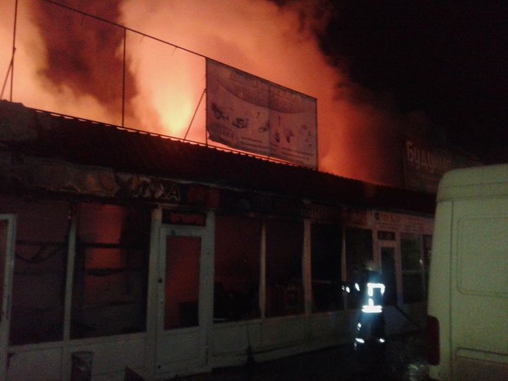 В результате пожара были повреждены 8 торговых киосков со строительными и промышленными товарами.