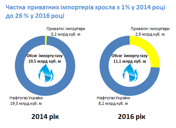 НАК "Нафтогаз Украины" в 2016 году поставил в страну 8,2 млрд куб. м природного газа, или 73,9% от общего объема импорта.