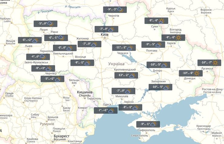 В Луцке в субботу ночью -3°, днем +1°, пасмурно. В воскресенье ночью -5°, днем 0°, облачно с прояснениями.