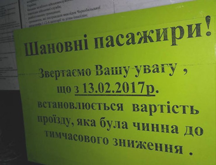 В частности, в маршрутном такси №721, которое курсирует по маршруту Киев – Вишневое, появились объявления о возврате цен на проезд.