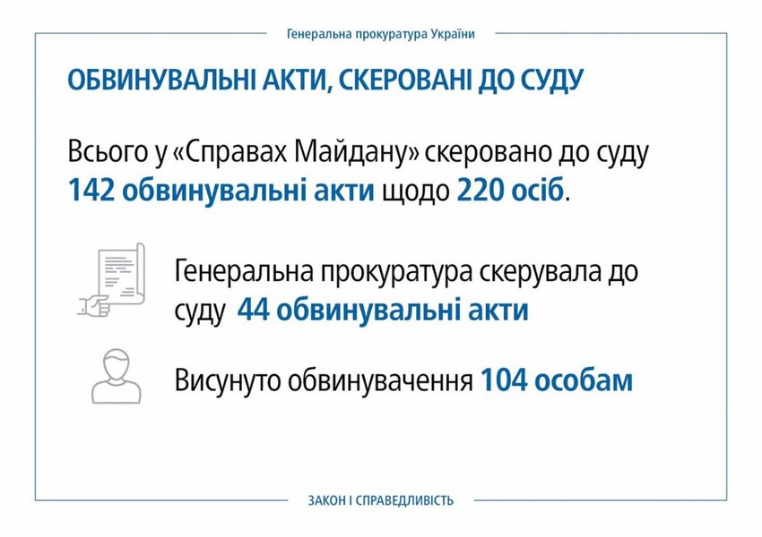 Генеральная прокуратура Украины направила в суд обвинительные акты в отношении 220 человек по делам Майдана.