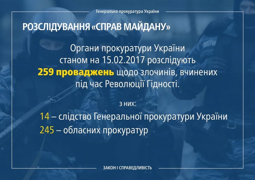 Напомним, ранее генпрокурор Юрий Луценко сообщил, что в делах о преступлениях против активистов Майдана осуждены 35 человек, 152 человека находятся в судебных процессах, около 190 - под досудебным следствием.