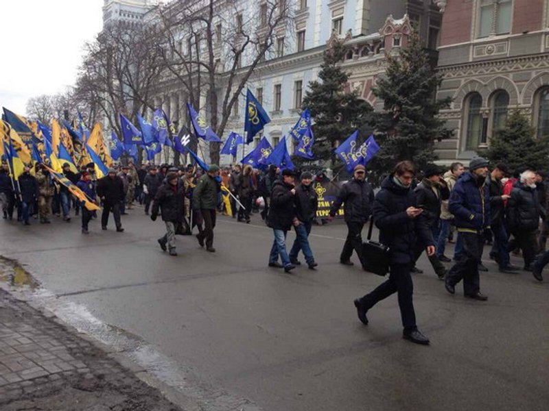 В центре Киева завершился марш активистов Национального корпуса, ВО "Свобода" и "Правого сектора". Об этом сообщает пресс-служба МВД.