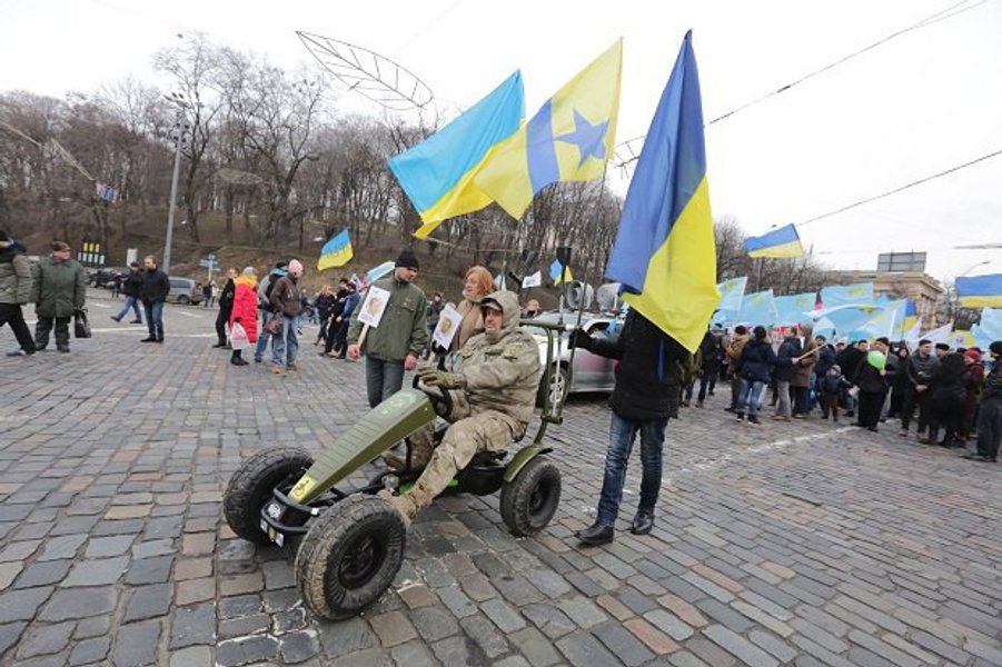 Сначала люди собрались на Алее Героев Небесной сотни возле Майдана Независимости, откуда прошли маршем в знак солидарности с крымскотатарским народом по маршруту ул.Институтская - Грушевского - Европейская площадь. После этого участники акции вернулись на Майдан, где провели митинг.