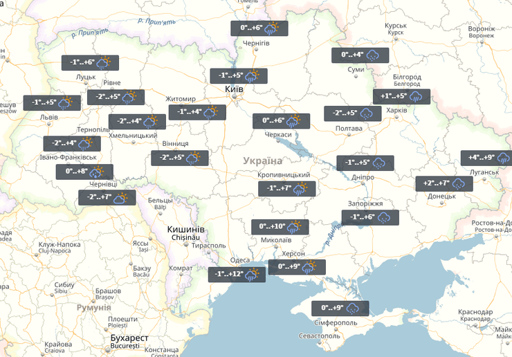 Во Львове завтра ливень, ночью -1°, днем +9°. В воскресенье пройдет дождь, -1°...+5°.