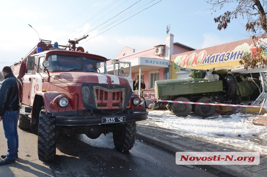 В Николаеве военный бензовоз врезался в зоомагазин