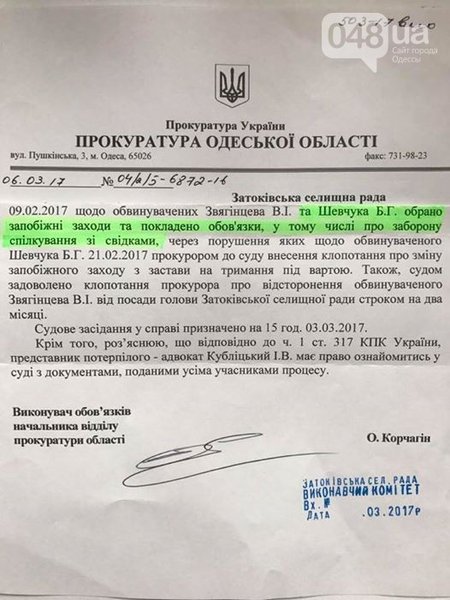 Ранее голова поселкового совета Затоки Звягинцев был отстранен решением суда на два месяца. Вместе с Шевчуком он проходит как обвиняемый по делу "66 участков".