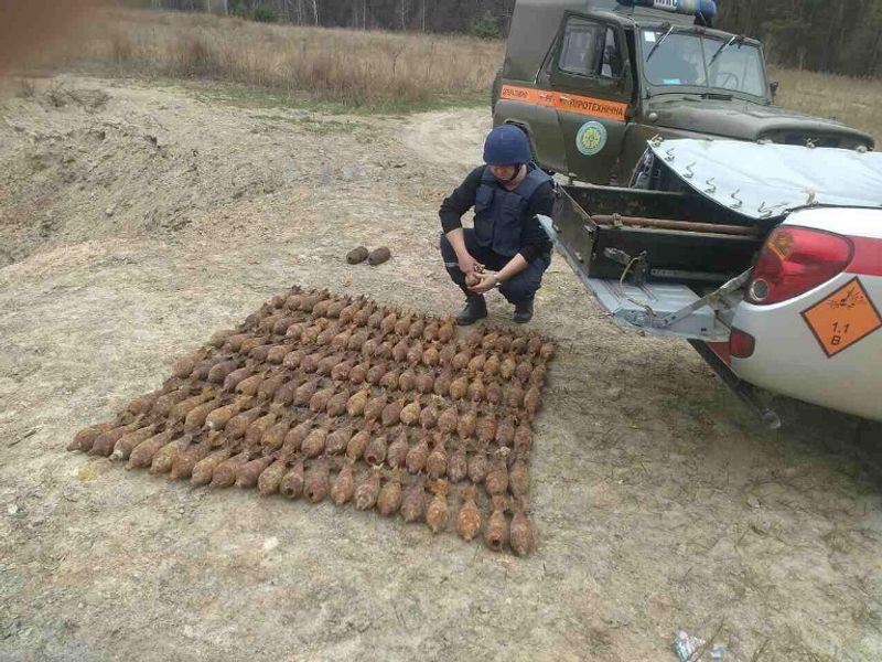 "31 марта во время обследования местности в урочище Лысая гора со стороны Столичного шоссе были обнаружены 82-мм мины времен Второй мировой войны в количестве 119 единиц", - говорится в сообщении.