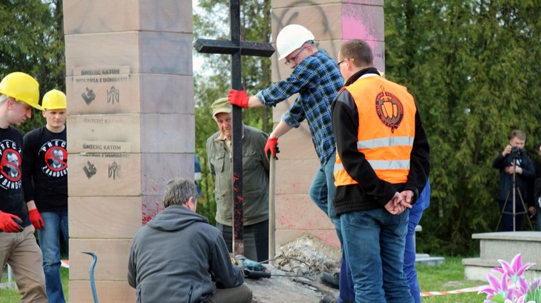По сообщениям польского сайта, памятник демонтировали члены польских националистических организаций по разрешению местной власти как "нелегально установленный".