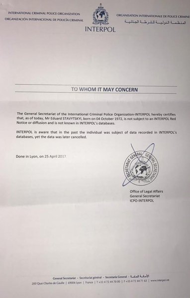 Напомним, на сайте Интерпола 4 августа 2016 года появилась информация, что Эдуард Ставицкий объявлен в розыск по линии этой организации.