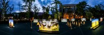 На стелах – фотографии погибших и фраза "Герои не умирают" на четырех языках: украинском, английском, немецком и французском. На них размещены фотографии с передовой, снятые украинскими военными фотокорреспондентами.