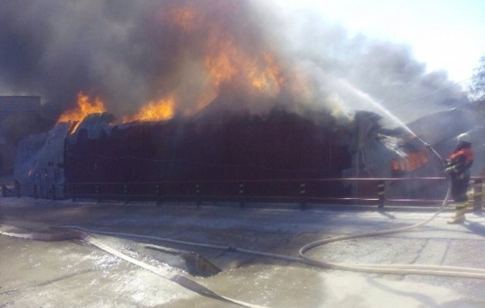 После прибытия на место пожара спасатели установили, что горит готовая продукция на площади 800 кв.м.
