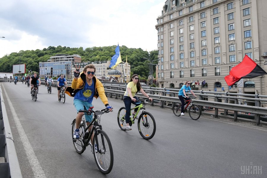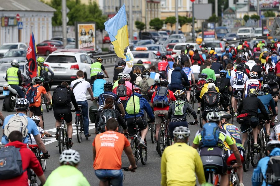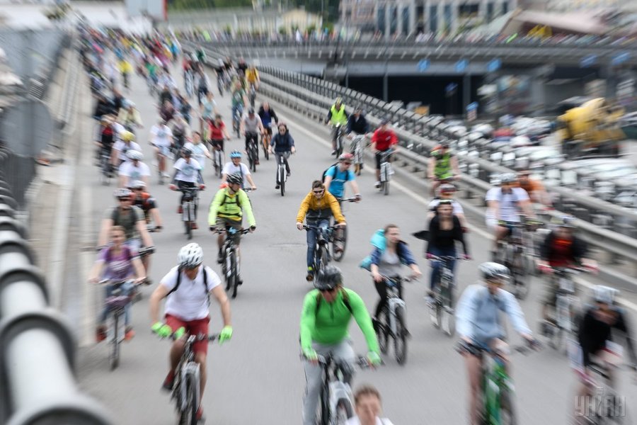 Сегодня в Киеве состоялся "Велодень" - акция велосипедистов в формате парада по центральным улицам.