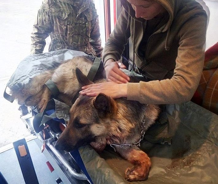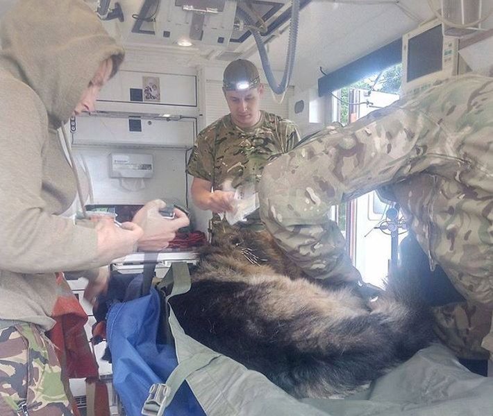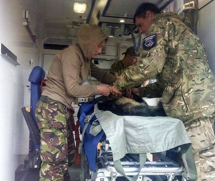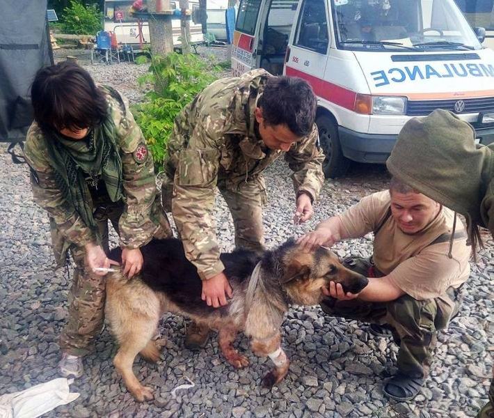 Утром 25 мая из-под обстрела волонтеры-медики команды ASAP Rescue вывезли двоих раненых бойцов сил АТО, позднее к ним привезли также тяжелораненую собаку, которая закрыла собой еще двоих военных и приняла удар на себя. Об этом говорится в сообщении ASAP в Facebook.