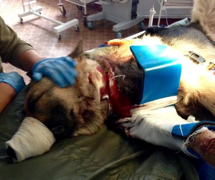 У животного серьезно повреждена шея, грудная клетка, раздроблена верхняя чаcть лапы. За его жизнь в Торецке полтора часа боролись военный анестезиолог, военный хирург и хирург ASAP. Собака выжила.