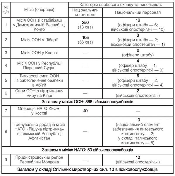 "На сегодняшний день 448 военнослужащих Вооруженных сил Украины участвуют в 9-ти международных операциях по поддержанию мира и безопасности в 7 странах мира и районе Абьей под руководством ООН, НАТО и в составе Совместных миротворческих сил в Приднестровском регионе Молдовы", - пишет издание.
