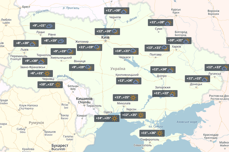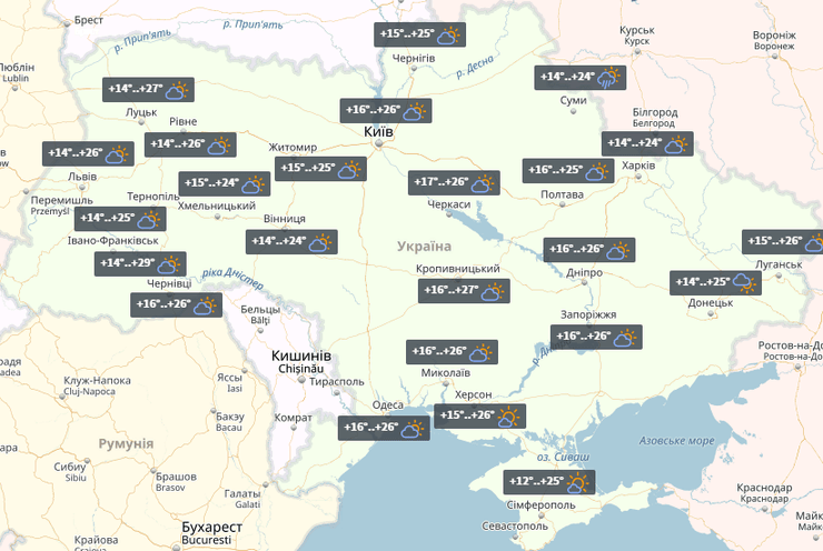 Согласно прогнозу погоды от УНИАН, в понедельник в Украине без осадков. Теплее всего будет на западе и в центре - до +27°. В остальных регионах днем столбик термометра поднимется до +26°.