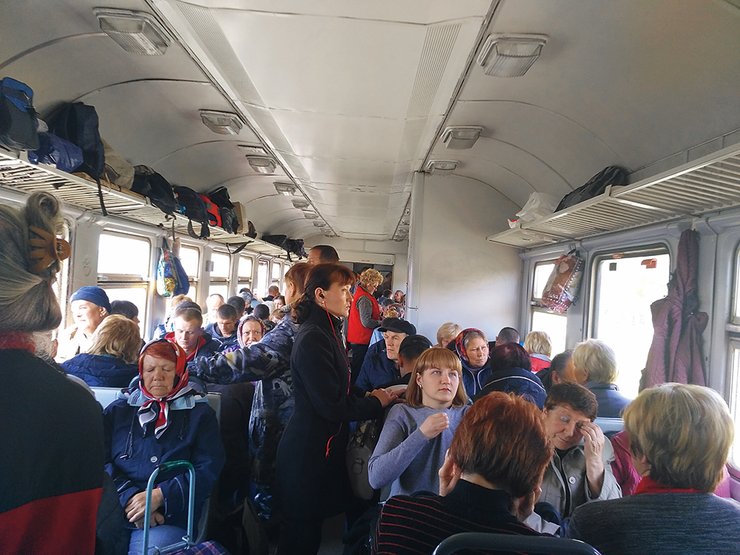 Счастливчики. Сидеть в электричке — большая роскошь. Ближе к Киеву места не остается даже в тамбурах