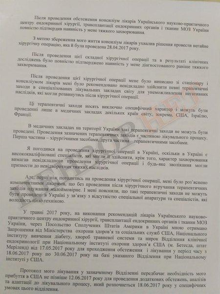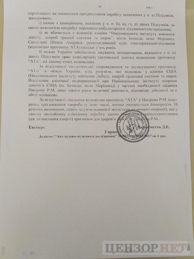 Именно для послеоперационного терапевтического лечения рака Насиров и просит разрешить ему выезд за границу, так как лечение по рекомендованному ему протоколу "АТА" в Украине невозможно.