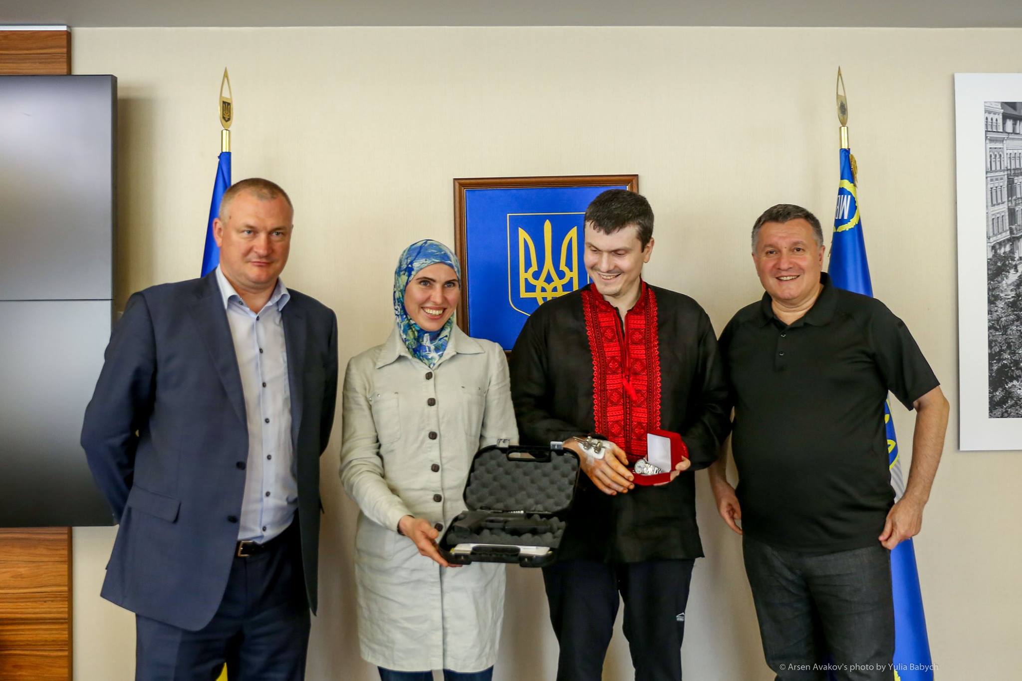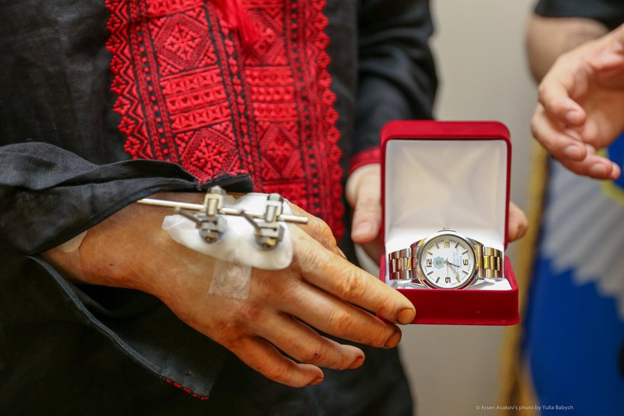 "Адам Осмаев сегодня выписался из больницы после покушения на него и Амину Окуеву! … Был рад наградить бойца полицейского добробата Амину, взамен старенького ПМ (заклинившего на 4-м выстреле) - новеньким Glock-43", - подчеркнул Аваков.