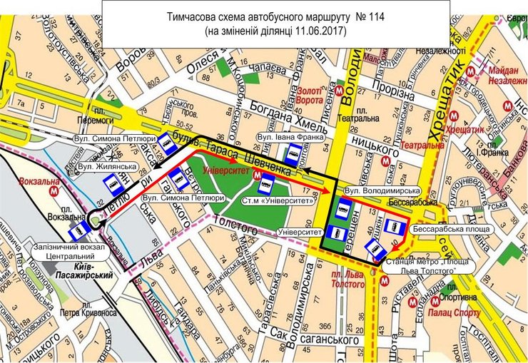 - автобусов №114, которые будут курсировать от улицы Милославской до Владимирского спуска (до Национальной филармонии).