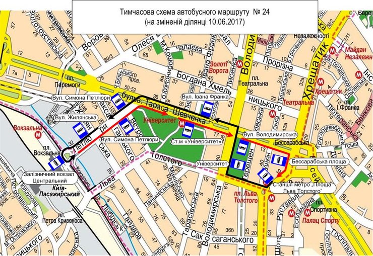 10 июня на время перекрытия движения транспорта на Европейской площади и улице Крещатик (на участке от Европейской площади до улицы Хмельницкого) вносятся изменения в работу: