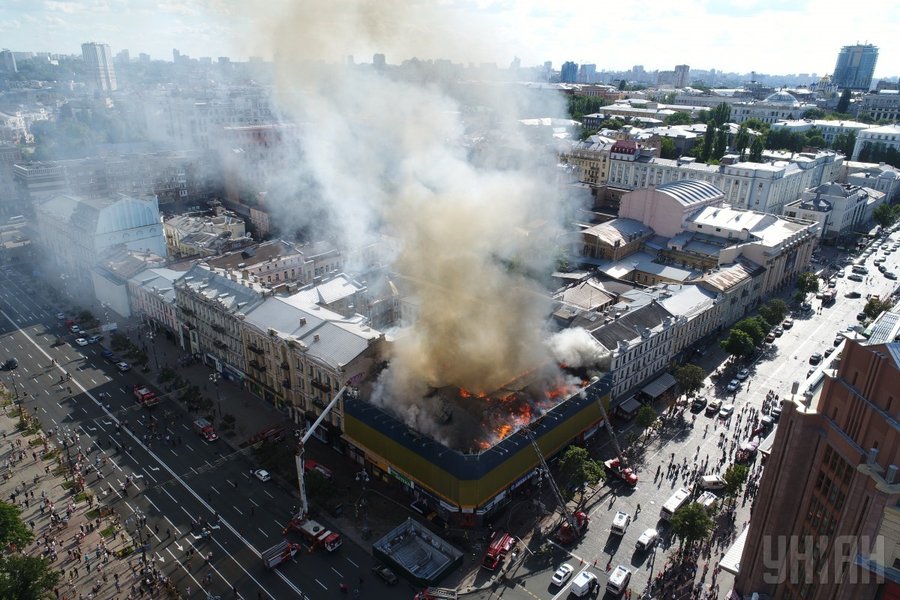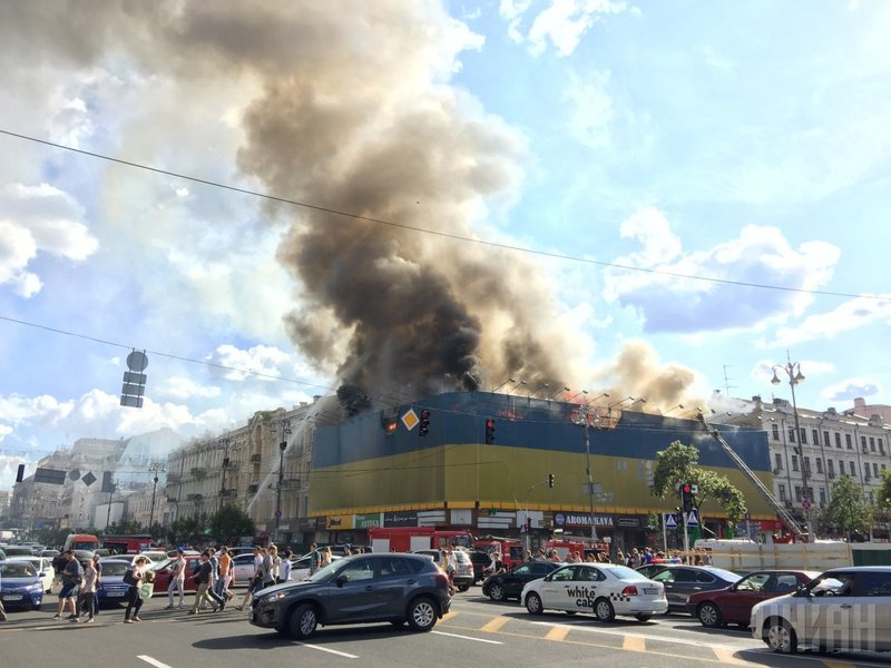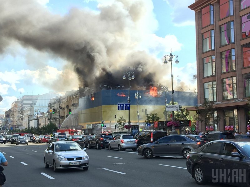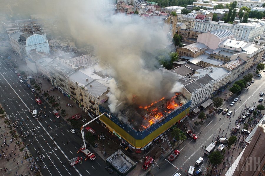 На улице Крещатик, 40 в центре Киева горит здание бывшего центрального гастронома. Об этом сообщает пресс-служба ГСЧС.