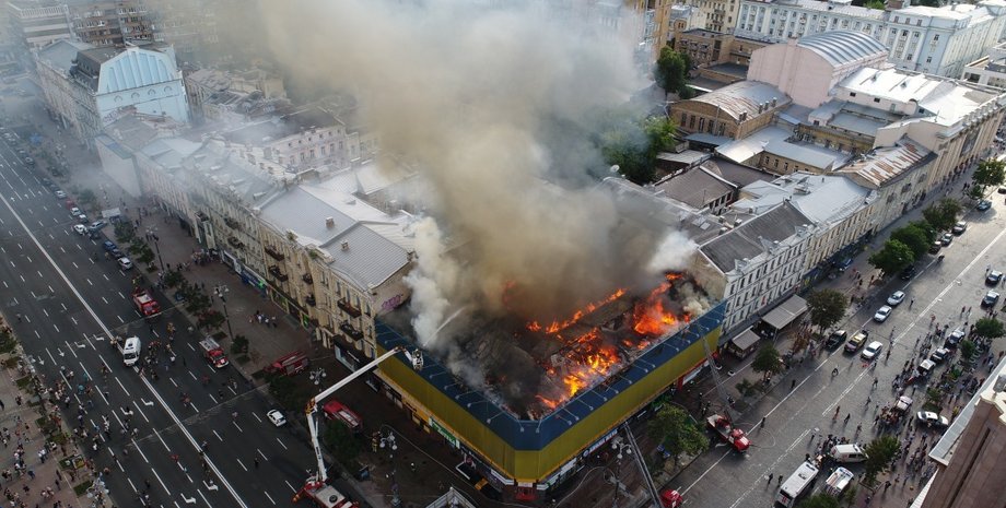 На прилегающей территории произошло сильное задымление. В связи с пожаром были временно перекрыты ул. Крещатик и Хмельницкого.